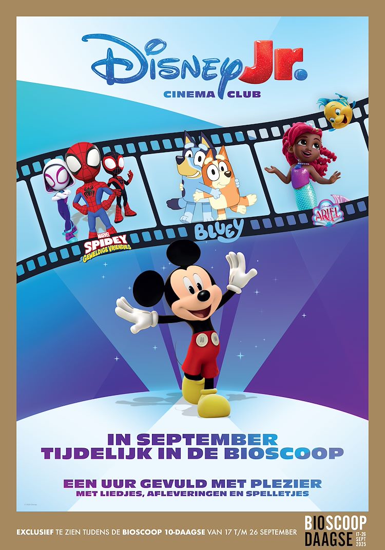 De Disney Junior Cinema Club is bedoeld voor de jongste filmliefhebbertjes met de beroemde Disneyhelden onder leiding van Mickey Mouse zoals: Ariel, Bluey, Spidey en Winnie de Poeh en méér. Bovendien met liedjes, dansjes, spelletjes en puzzels. Neem je opa en oma ook mee?