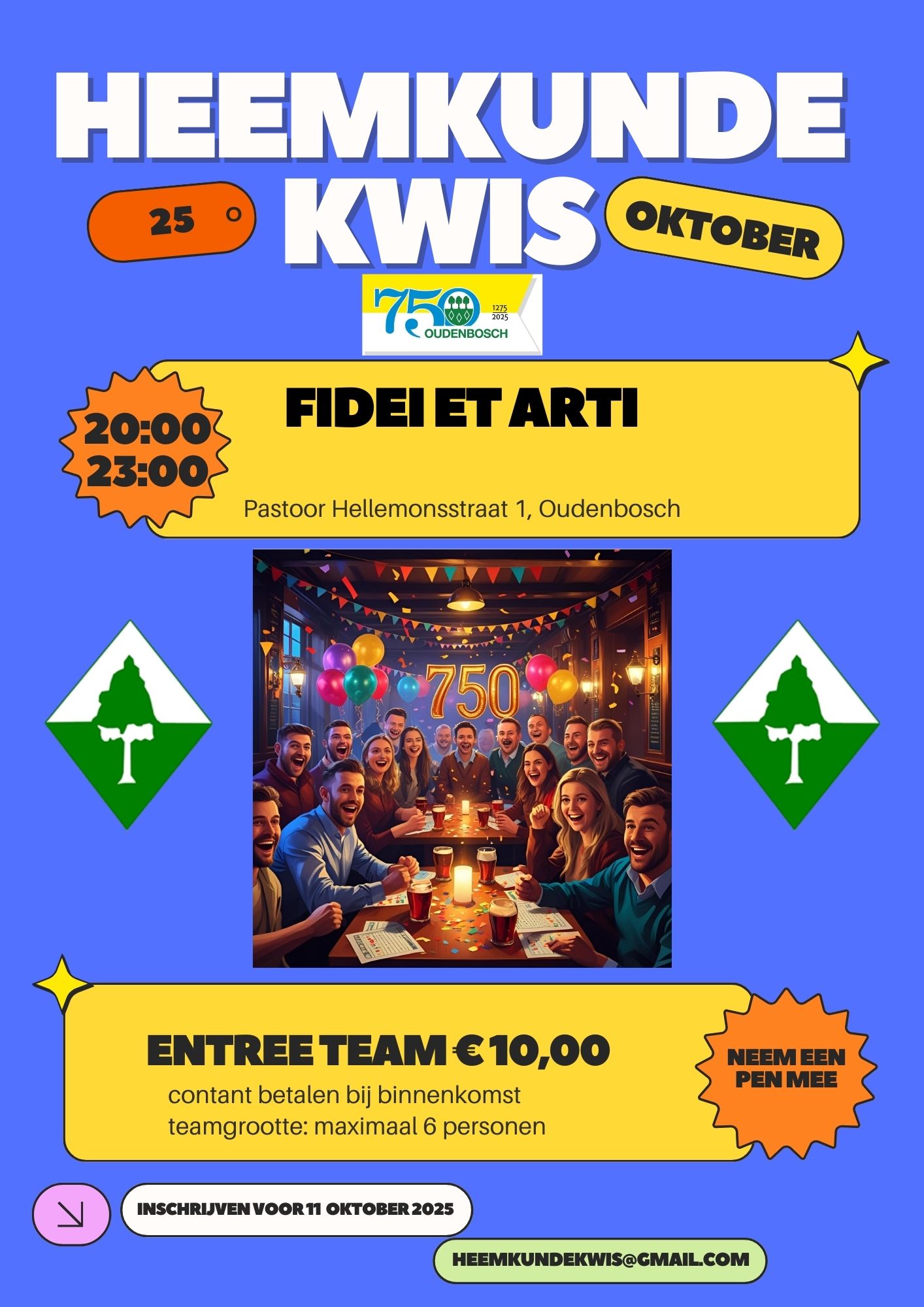 Join us for a fun and educational quiz night full of local history and fun facts! Form a team, test your knowledge and celebrate Oudenbosch's 750th anniversary together. An evening full of fun, competition and nostalgia awaits you!