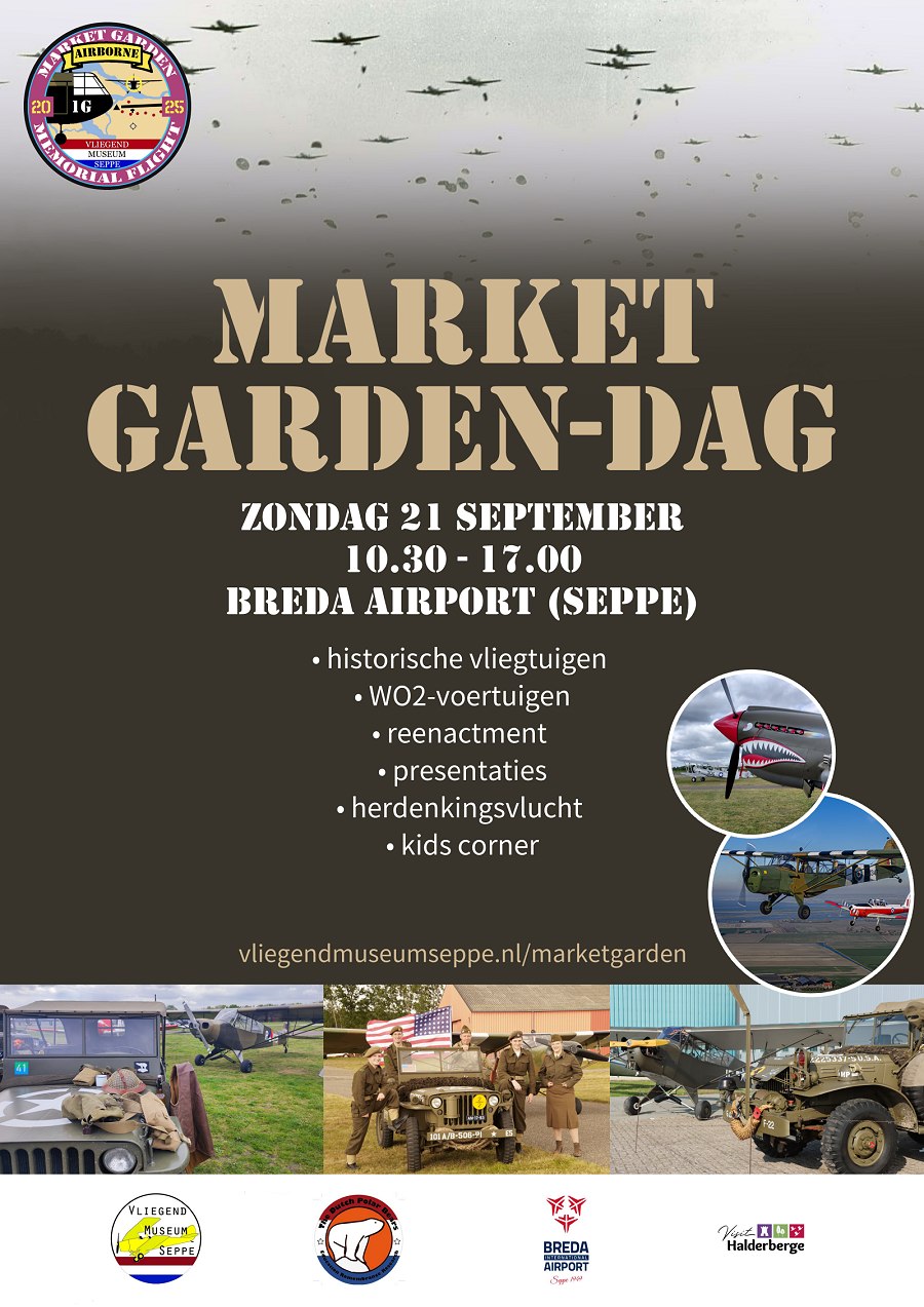 - A formation flight with museum aircraft over West Brabant, in memory of the pilots who died during Market Garden. The flight departs at 11:00 am.